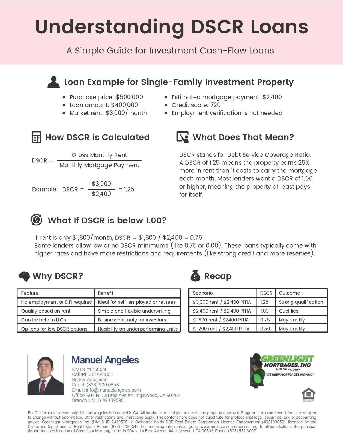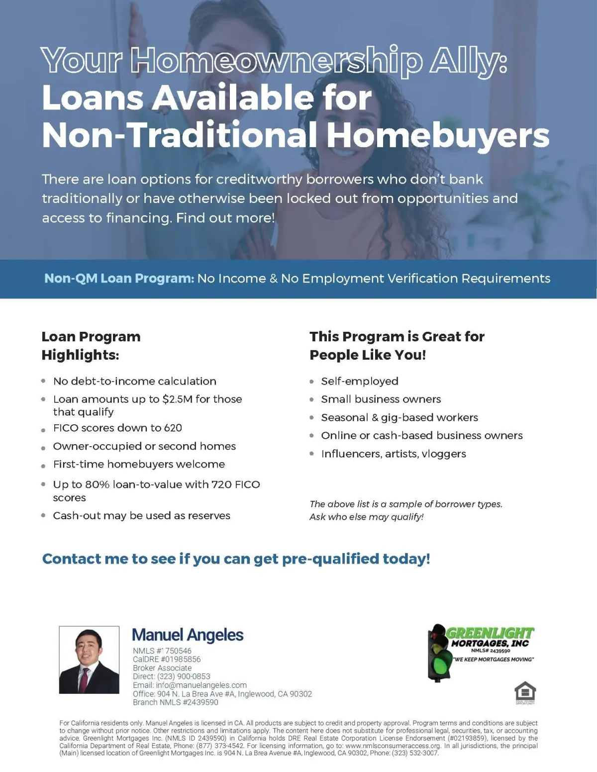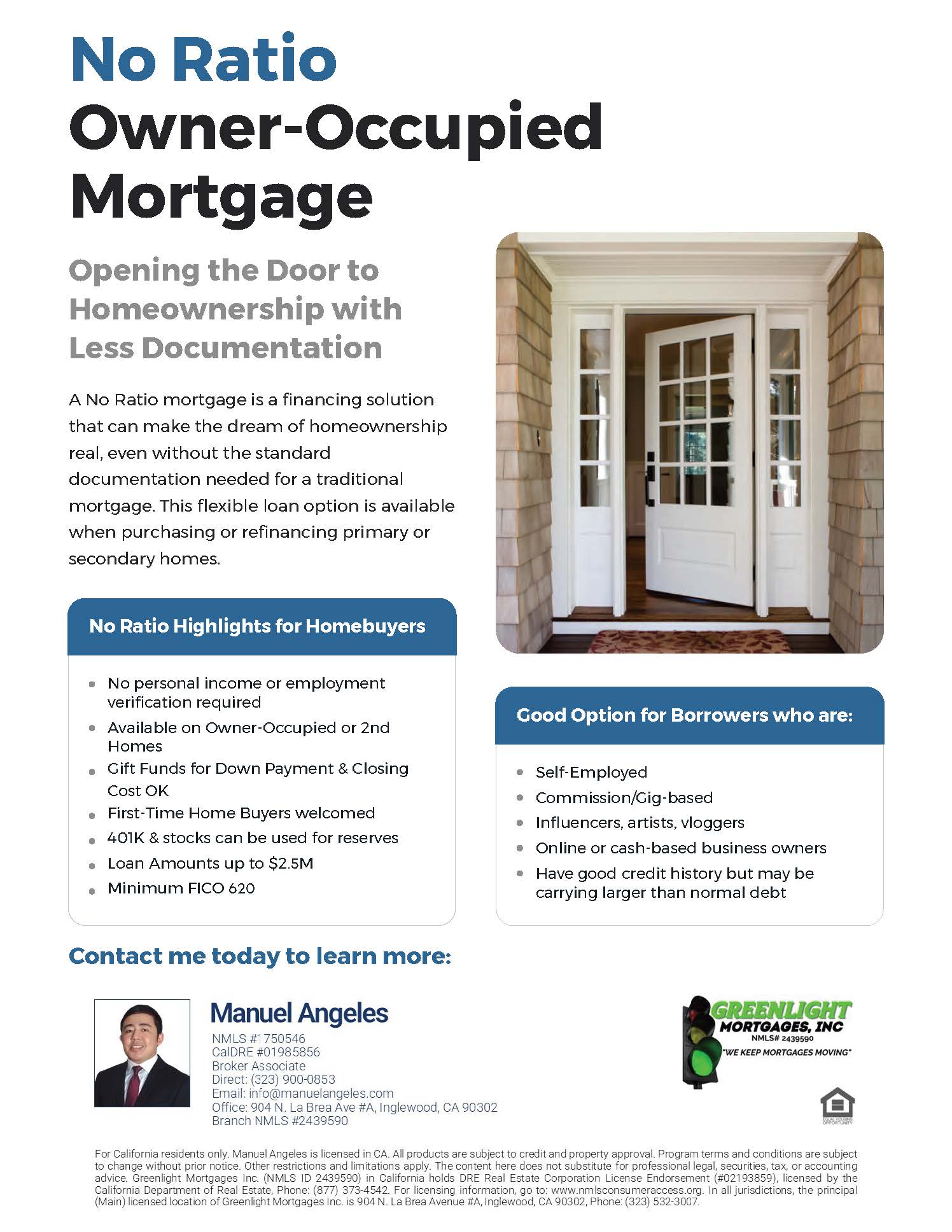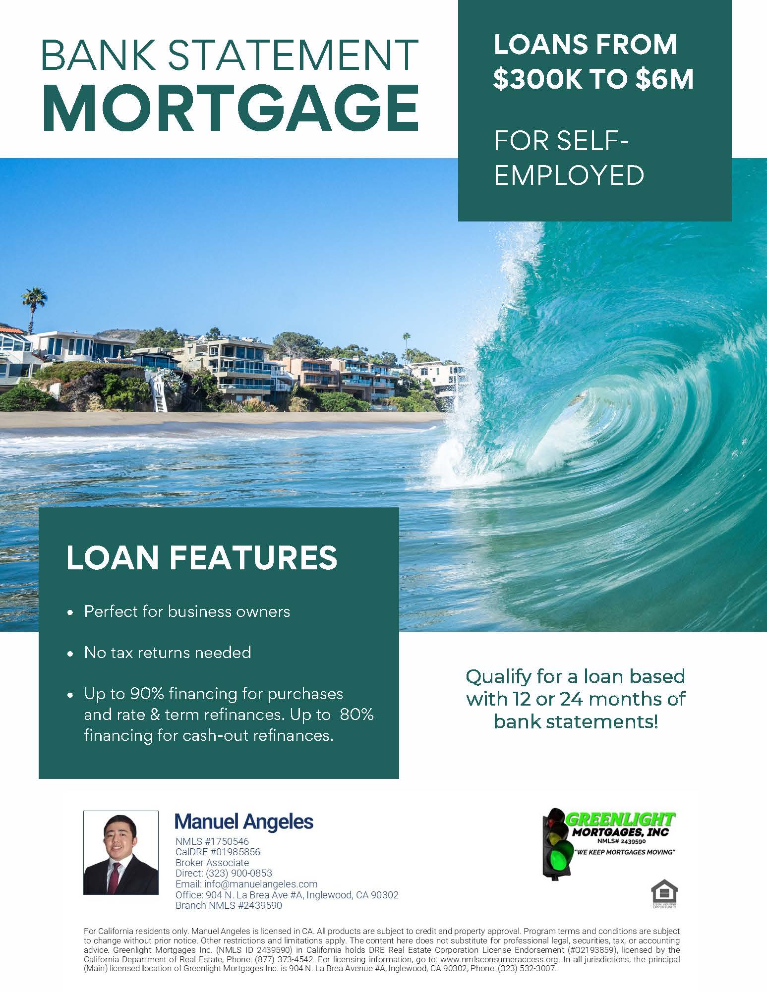 For California residents only. Manuel Angeles is licensed in CA. All products are subject to credit and property approval. Program terms and conditions are subject to change without prior notice. Other restrictions and limitations apply. The content here does not substitute for professional legal, securities, tax, or accounting advice. Greenlight Mortgages Inc. (NMLS ID 2439590) in California holds DRE Real Estate Corporation License Endorsement (#02193859), licensed by the California Department of Real Estate, Phone: (877) 373-4542. For licensing information, go to: www.nmlsconsumeraccess.org. In all jurisdictions, the principal (Main) licensed location of Greenlight Mortgages Inc. is 904 N. La Brea Avenue #C, Inglewood, CA 90302, Phone: (323) 532-3007. Non-owner-occupied business purpose investment residential and commercial property loans are available in AL, AR, CA, CO, CT, DE, DC, GA, HI, IL, IN, IA, KS, KY, LA, ME, MD, MA, MS, MO, NE, NH, NM, NY, OH, OK, PA, RI, SC, TX, VT, WA, WV, WI, WY.
