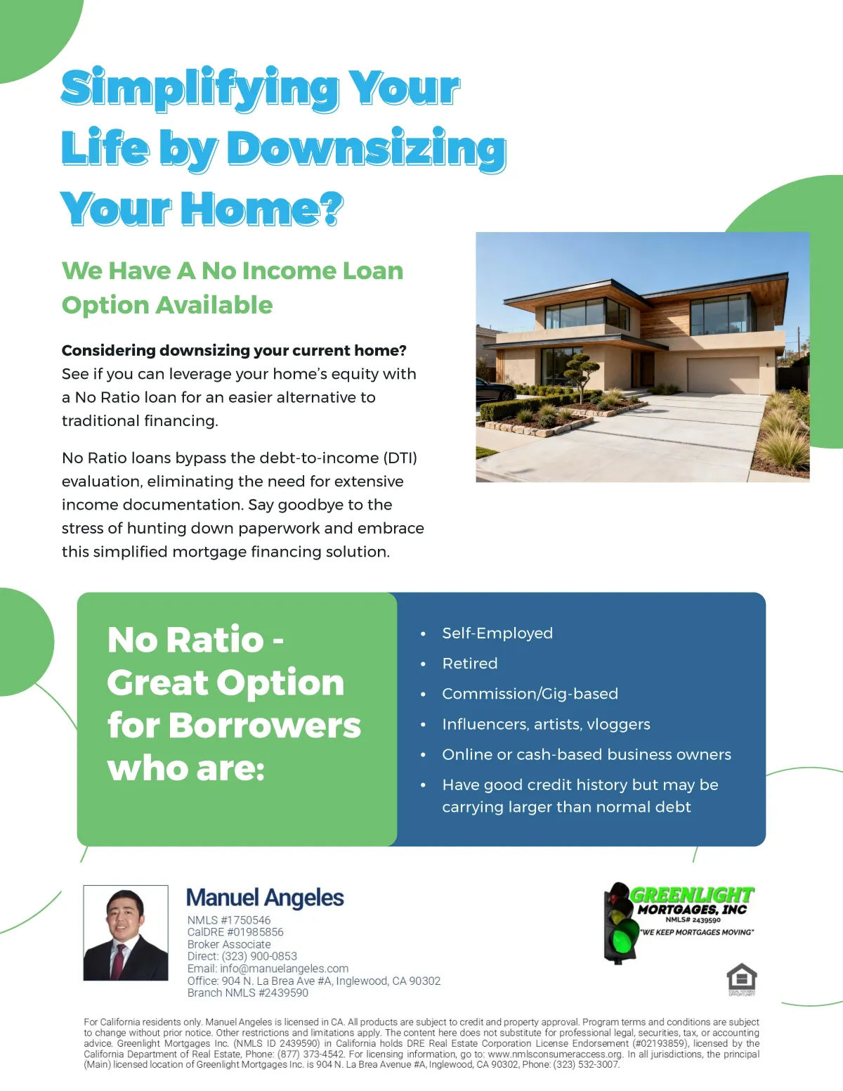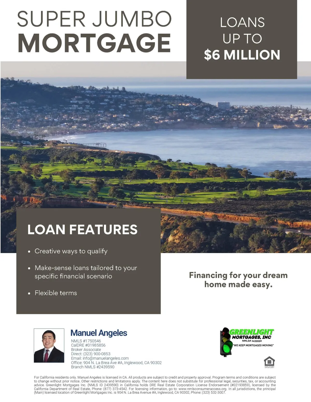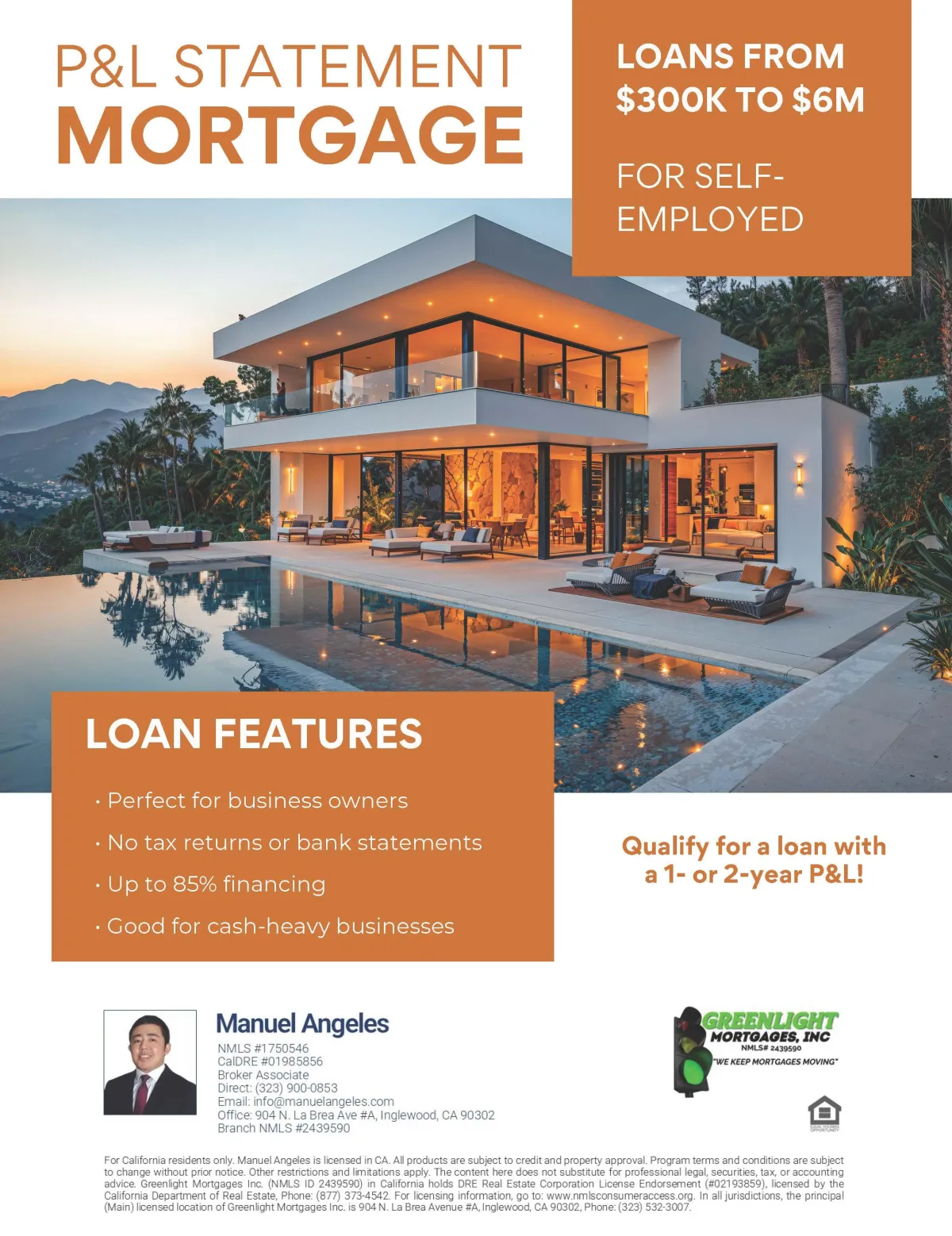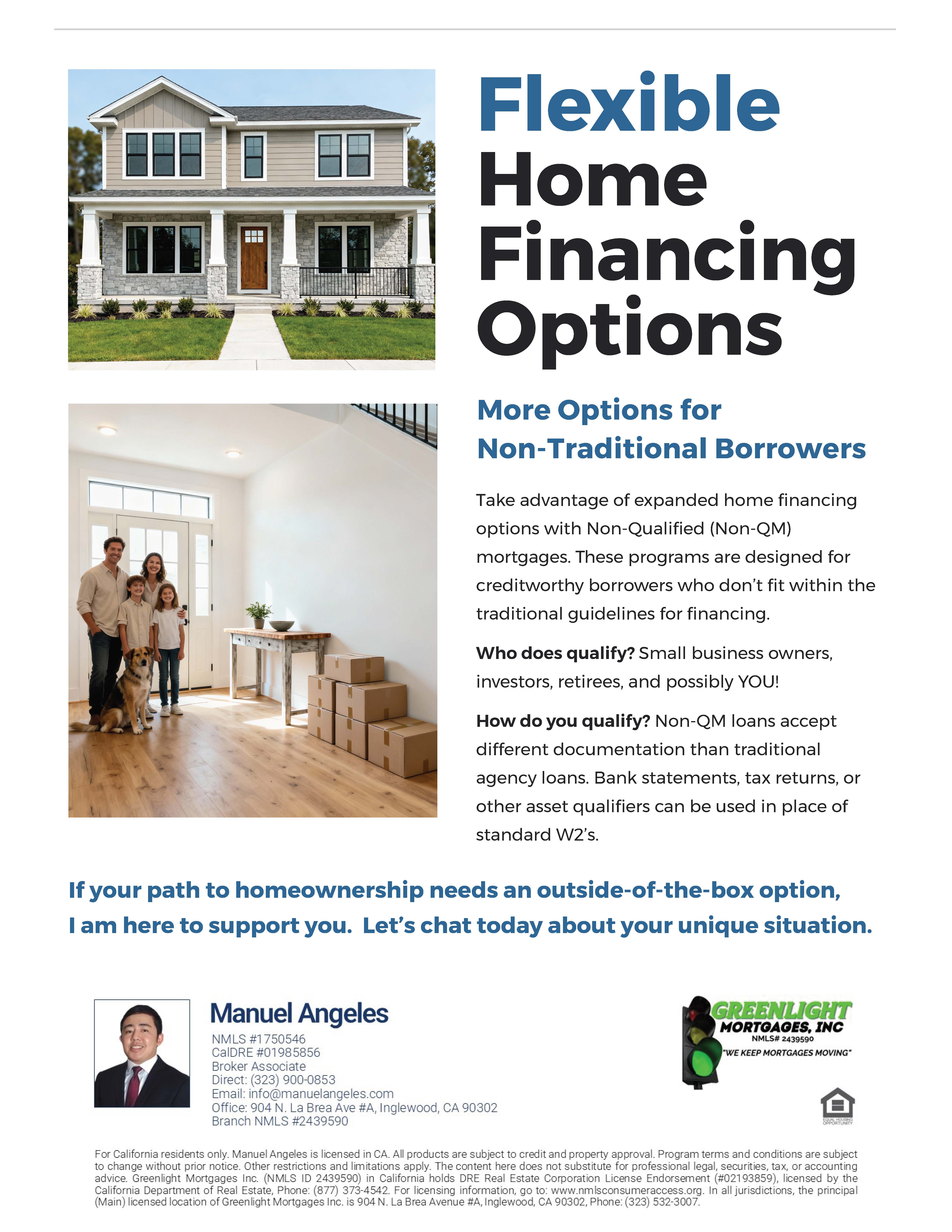For California residents only. Manuel Angeles is licensed in CA. All products are subject to credit and property approval. Program terms and conditions are subject to change without prior notice. Other restrictions and limitations apply. The content here does not substitute for professional legal, securities, tax, or accounting advice. Greenlight Mortgages Inc. (NMLS ID 2439590) in California holds DRE Real Estate Corporation License Endorsement (#02193859), licensed by the California Department of Real Estate, Phone: (877) 373-4542. For licensing information, go to: www.nmlsconsumeraccess.org. In all jurisdictions, the principal (Main) licensed location of Greenlight Mortgages Inc. is 904 N. La Brea Avenue #C, Inglewood, CA 90302, Phone: (323) 532-3007. Non-owner-occupied business purpose investment residential and commercial property loans are available in AL, AR, CA, CO, CT, DE, DC, GA, HI, IL, IN, IA, KS, KY, LA, ME, MD, MA, MS, MO, NE, NH, NM, NY, OH, OK, PA, RI, SC, TX, VT, WA, WV, WI, WY.